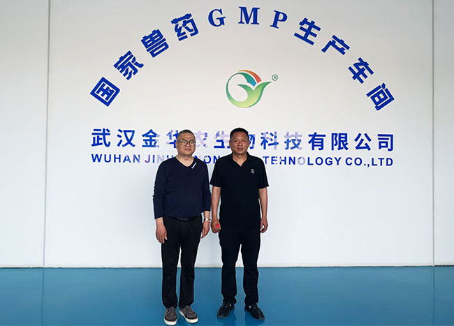 在公司技術(shù)研發(fā)總監(jiān)姚教授、運營部郭總的陪同下,張總一行首先參觀了位于葛店經(jīng)濟技術(shù)開發(fā)區(qū)的現(xiàn)代化生產(chǎn)基地。該基地于 2024 年完成二期擴建,新增水產(chǎn)漁藥專用生產(chǎn)線 8 條,涵蓋消毒劑、殺蟲劑、微生態(tài)制劑等全品類。在智能化車間,張總、史總、以及團隊詳細了解了“漁康金諾”、“出血菌炎凈”、 “車指安”、“水霉凈” 等新品的生產(chǎn)工藝,對公司通過化藥中草藥“高含量納米技術(shù)、長效干擾素技術(shù)、靶向緩釋技術(shù)”等技術(shù)提升產(chǎn)品效能的創(chuàng)新路徑給予高度評價。