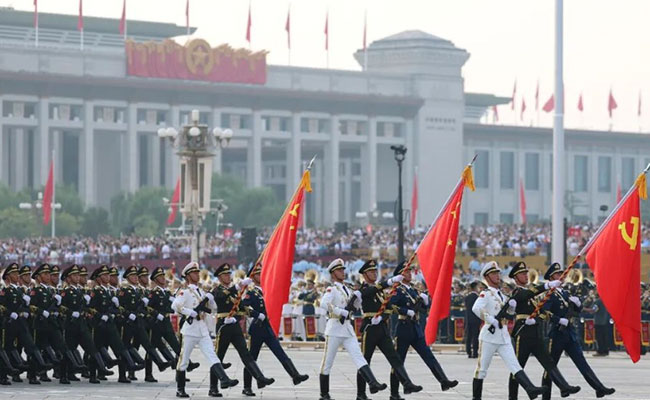 ? ? ? 上午9時(shí),閱兵儀式正式拉開帷幕。伴隨著雄壯的國歌奏響,全場肅立行注目禮,每個(gè)人心中涌動(dòng)著難以抑制的激動(dòng)與豪情。受閱部隊(duì)步伐鏗鏘、整齊劃一地通過檢閱臺(tái),踏出鋼鐵洪流般的磅礴氣勢;一批批高精尖武器裝備陸續(xù)亮相,戰(zhàn)車轟鳴、大地微顫,盡顯國家科技強(qiáng)軍的力量;空中梯隊(duì)呼嘯掠過蒼穹,每一幀畫面都凝聚著一個(gè)大國不容置疑的威嚴(yán)。大家認(rèn)真觀看,心潮澎湃,為祖國的強(qiáng)大實(shí)力和國防建設(shè)的輝煌成就而備感自豪。